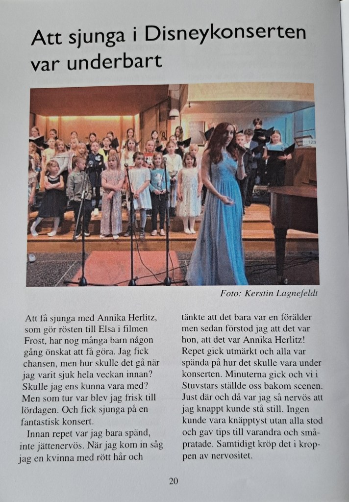 Att ta in Annika som gästartist till en körkonsert är ett vinnande koncept. Disneys musik tilltalar hela familjen och barnens glädje när de får sjunga ihop med ”riktiga Elsa” skapar ett minne för livet.